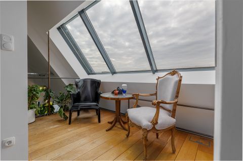 Eladásra kínálunk Budapest egyik legkarakteresebb, belső kétszintes, tetőteraszos ingatlanát. Ez a 2011-ben, ráépítéssel létrehozott loft-penthouse egy 1932-es építésű, art deco stílusú, liftes társasház legfelső szintjeit foglalja el. A lakás nettó lakóterülete 203 m², a teraszokkal együtt azonban 240 m²-es élettérrel rendelkezik.