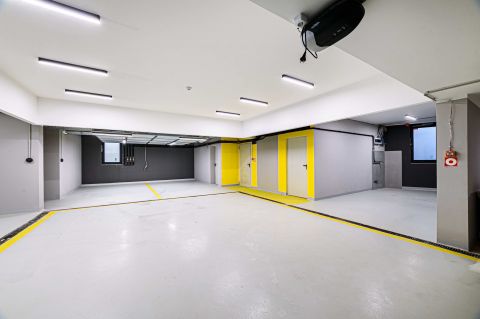 A lakáshoz két teremgarázs-beálló tartozik (20 M Ft/db), valamint egy nagyméretű, 14 m²-es tároló (10 M Ft).