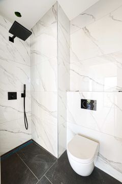 A belső tereket neves belsőépítész álmodta meg, amelynek köszönhetően a modern design, a luxus hideg- és melegburkolatok, valamint a harmonikus színvilág egységes, letisztult enteriőrt alkotnak.